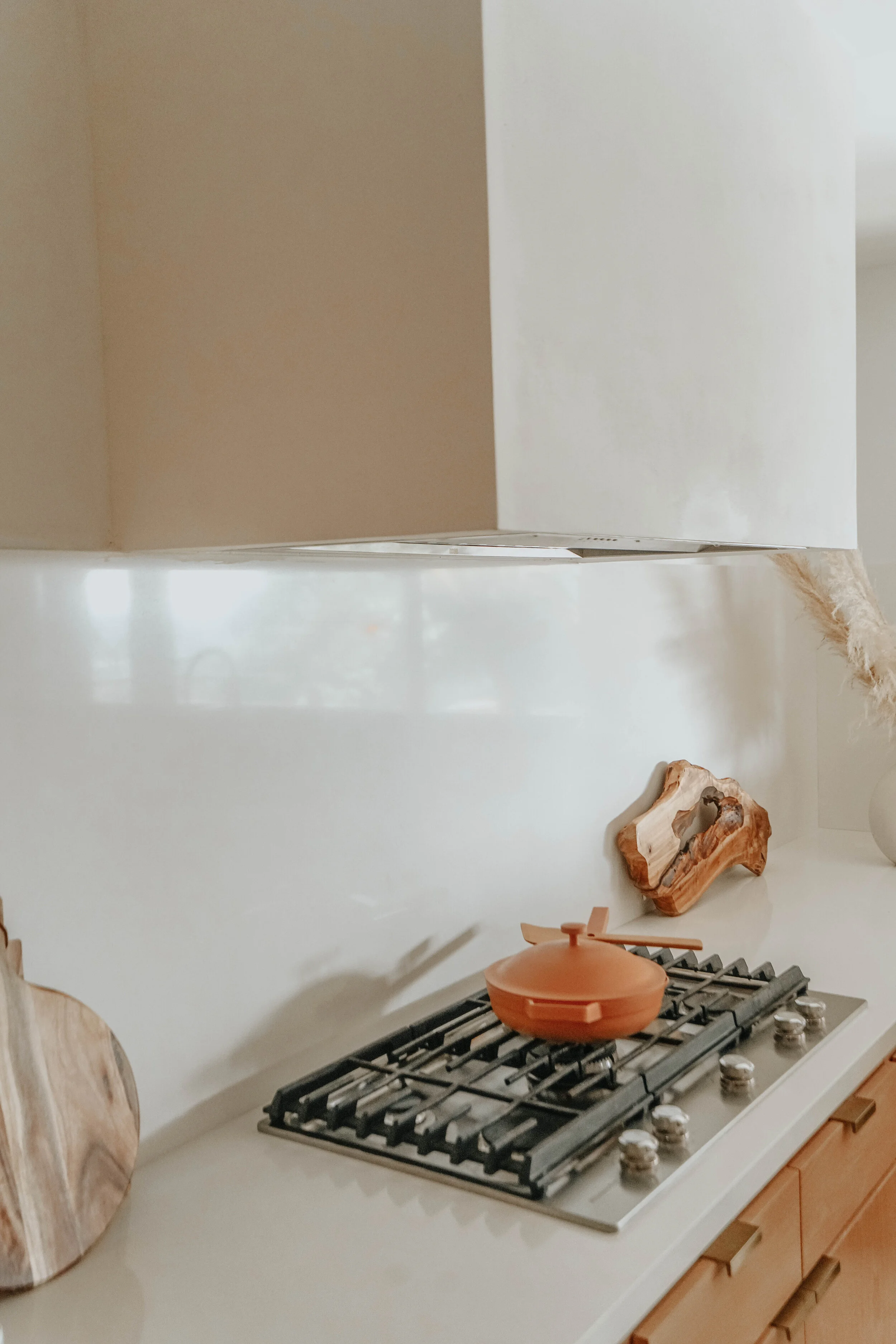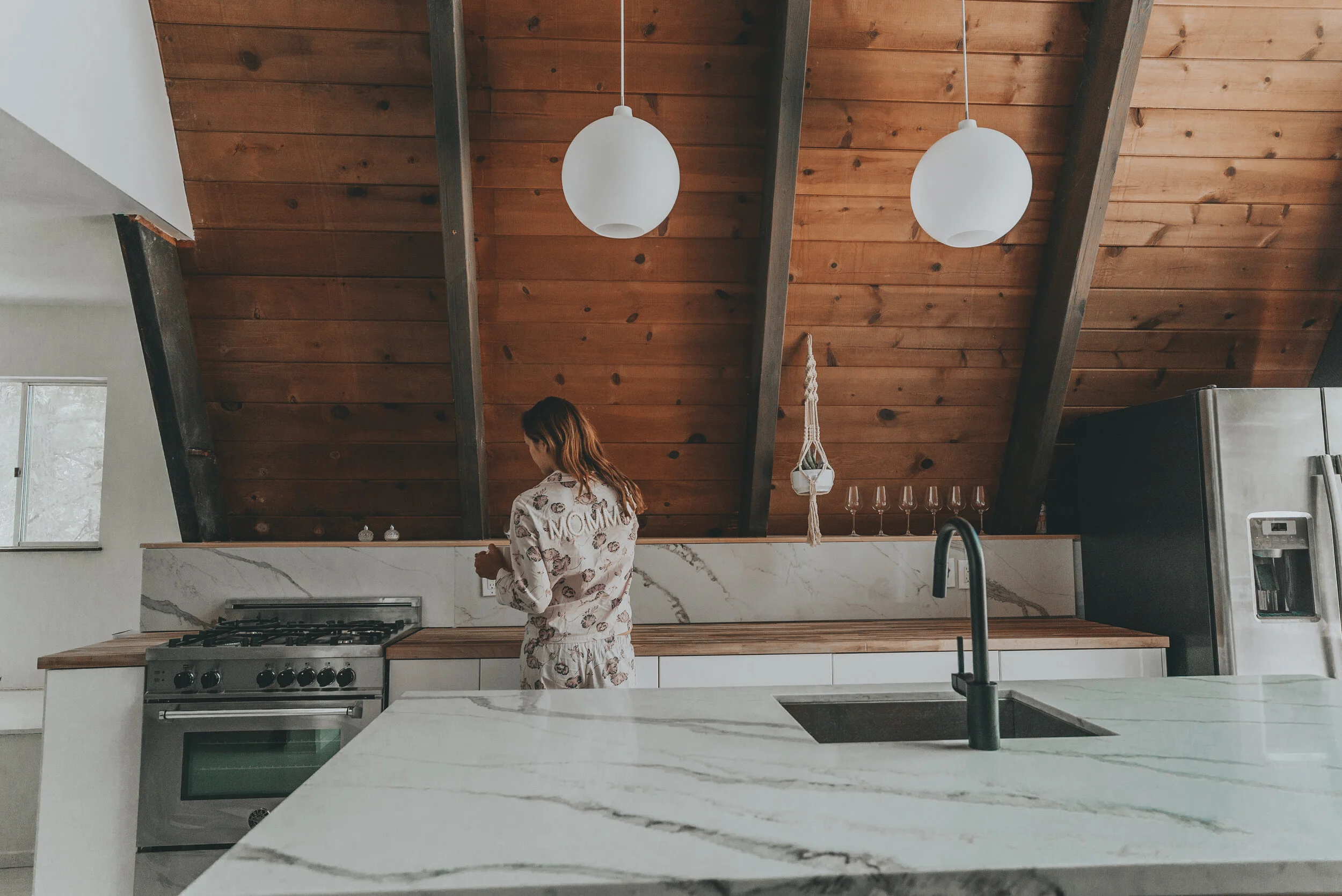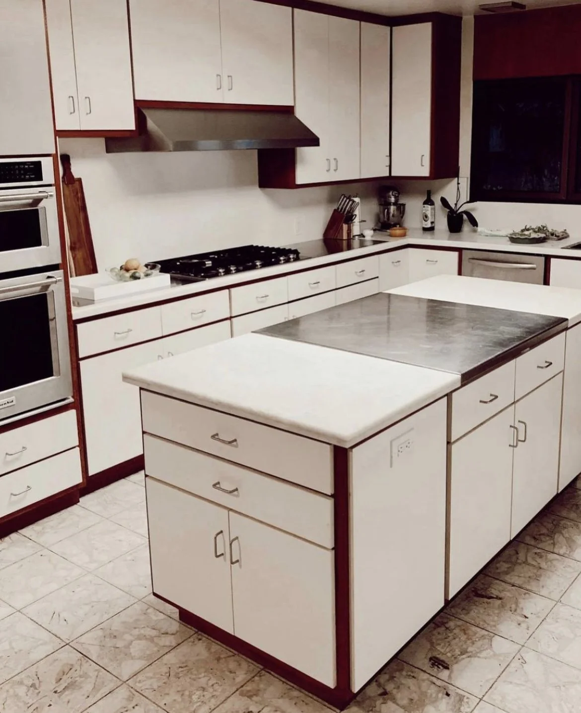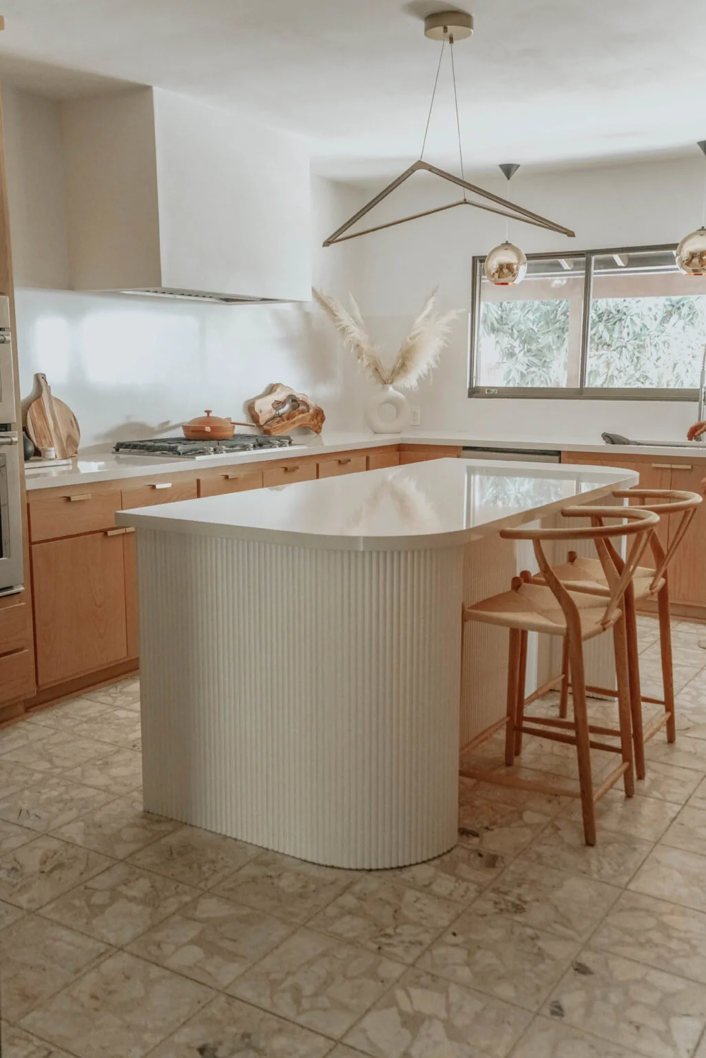 Villa Knolls was a dream house in the foothills of Pasadena, CA. The home was a custom built 1969 home oozing James Bond vibes. The existing kitchen was in need of revival. The owners replaced the island with a custom made, ribbed white oak panels with quartz countertops.